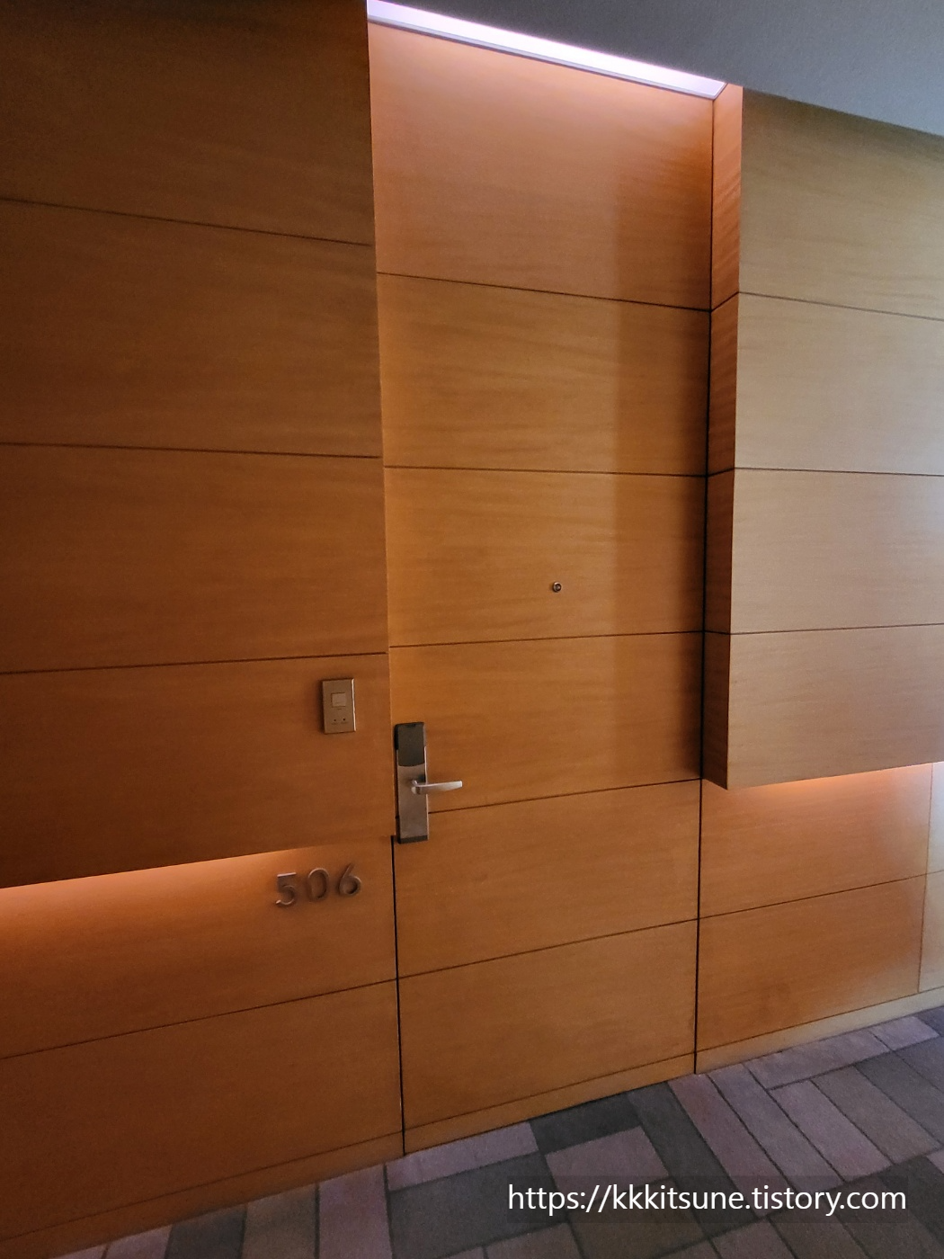 벽의 톤과 객실 문의 톤이 일치해서