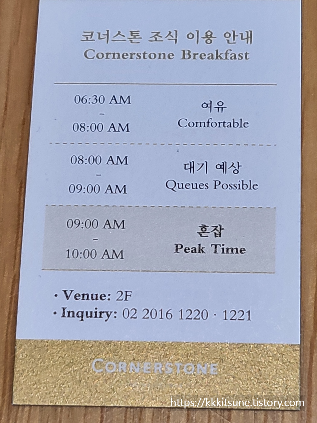 2층: 조식 먹는 코너스톤