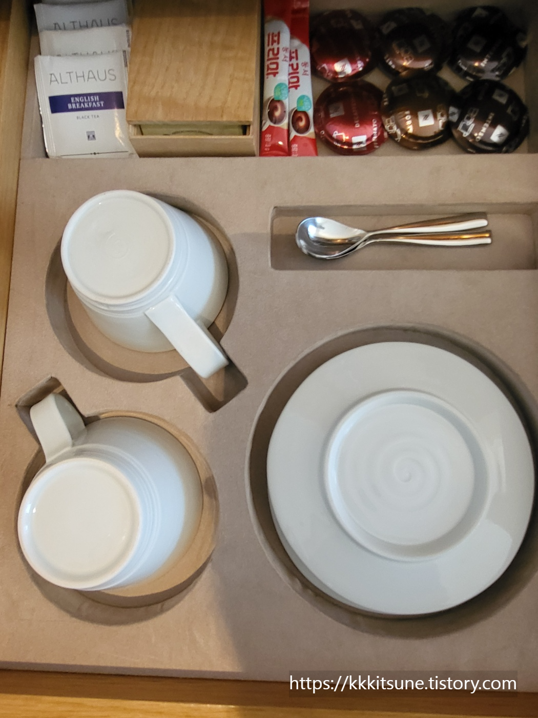 커피, 티, 커피잔도 역시 구비되어 있었고요