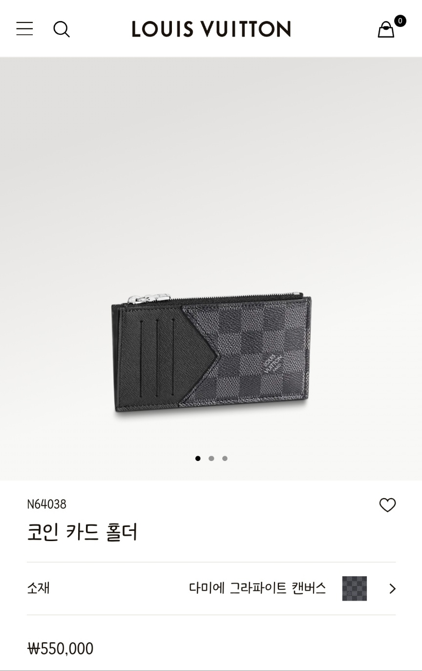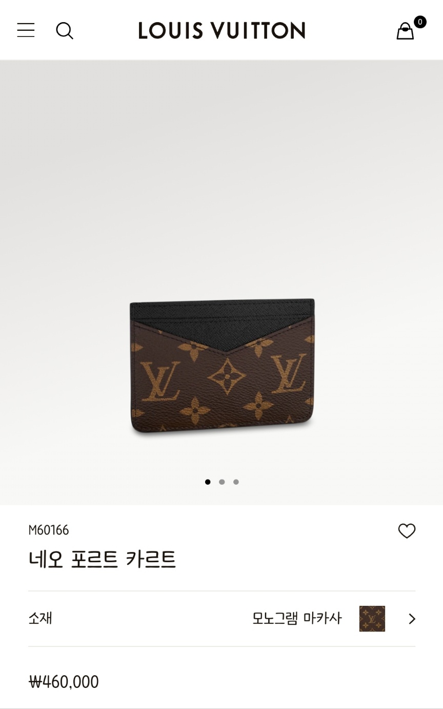 짝꿍 카드지갑을 루이비통 홈페이지에서 미리 서치 해봤는데