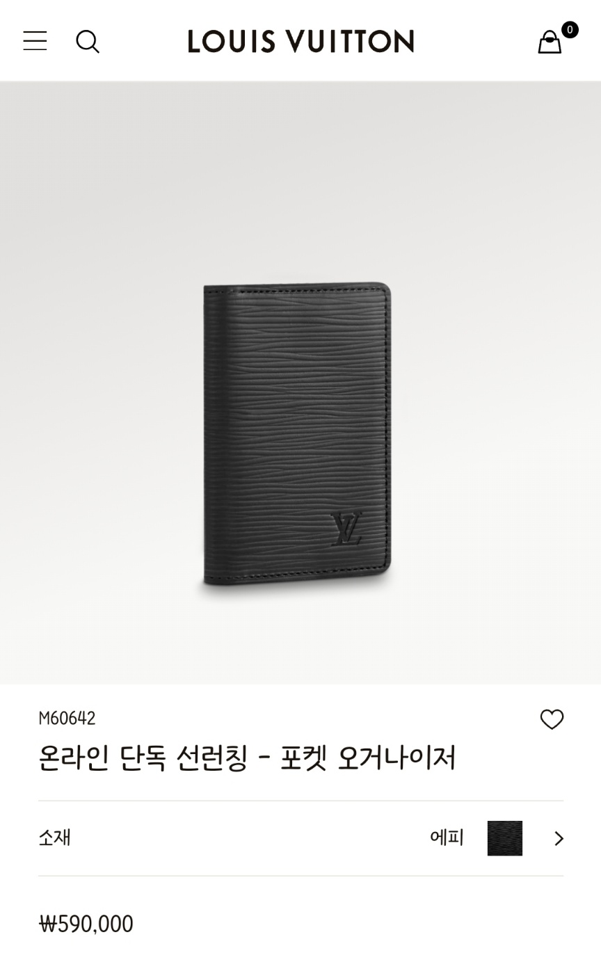 내가 구매한 루이비통 카드지갑 포켓오거나이저의 가격은 59만 원이다.