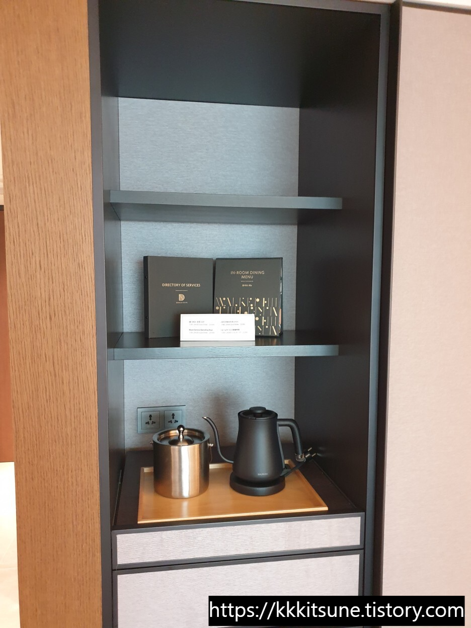 호텔에서 전기 포트 잘 안 쓰는데, 너무 예뻐서 써봤다ㅠㅠ 비싸기도 하고ㅠㅠ