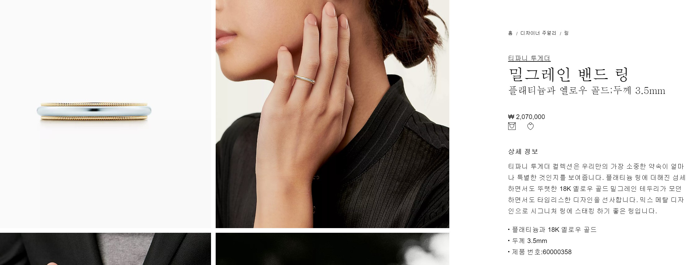 티파니 밀그레인은 손가락 가늘고 긴 사람들이 끼면 엄청 예쁠 것 같다.