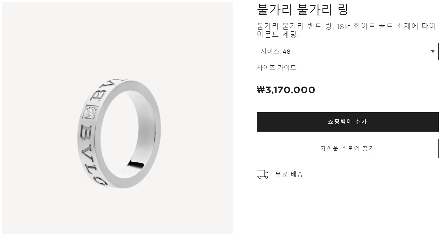 불가리 웨딩밴드하면 또 비제로원이 제일 먼저 나온다.
