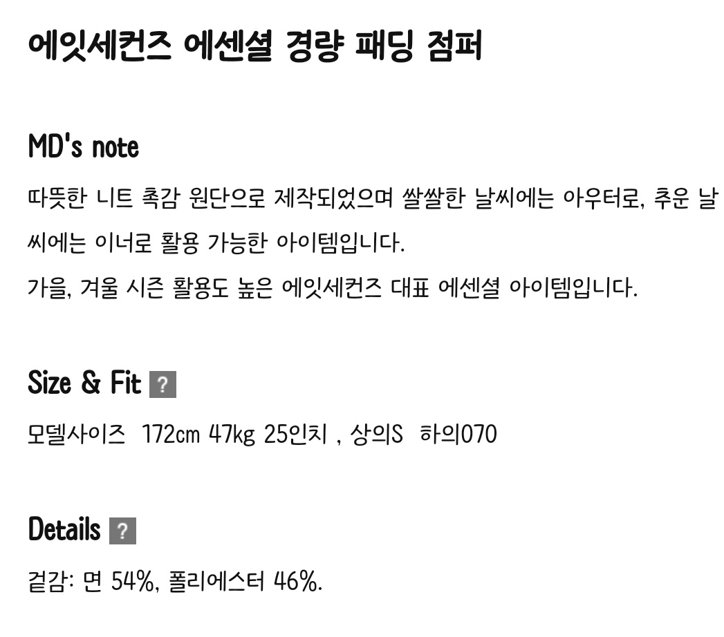 에잇세컨즈 니트 경량패딩은