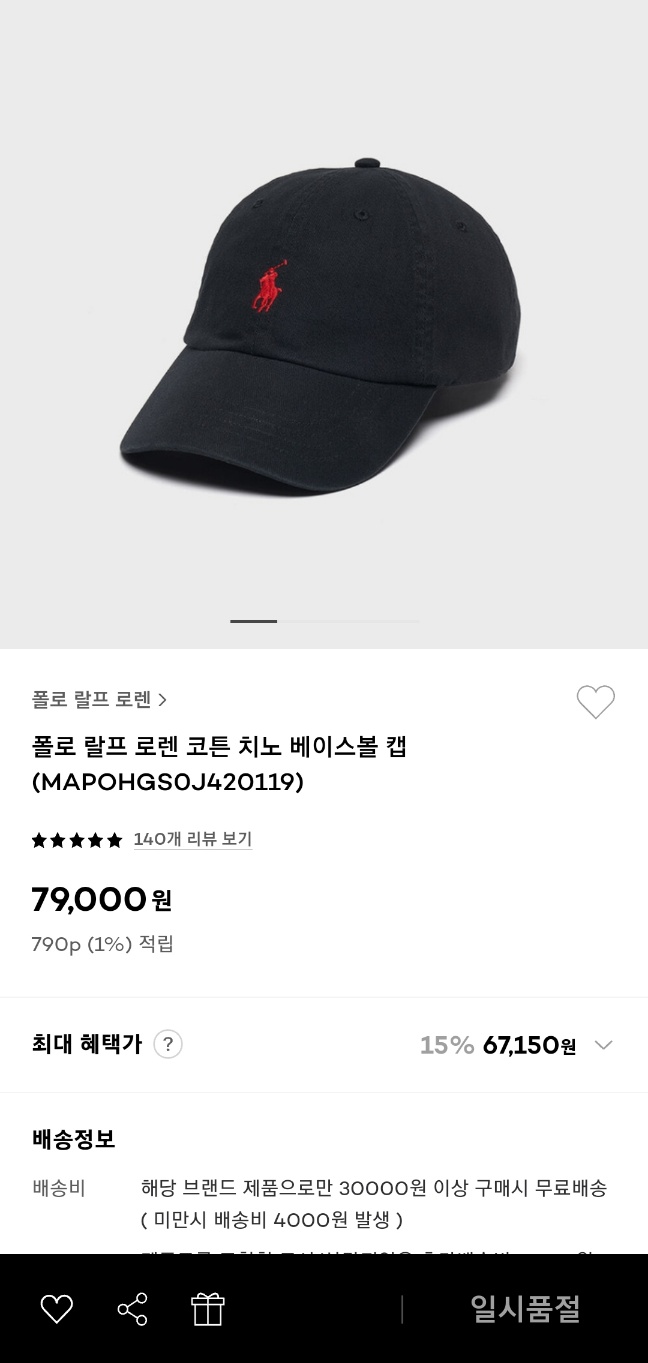 폴로 볼캡 가격은 79,000원이다. (정가)