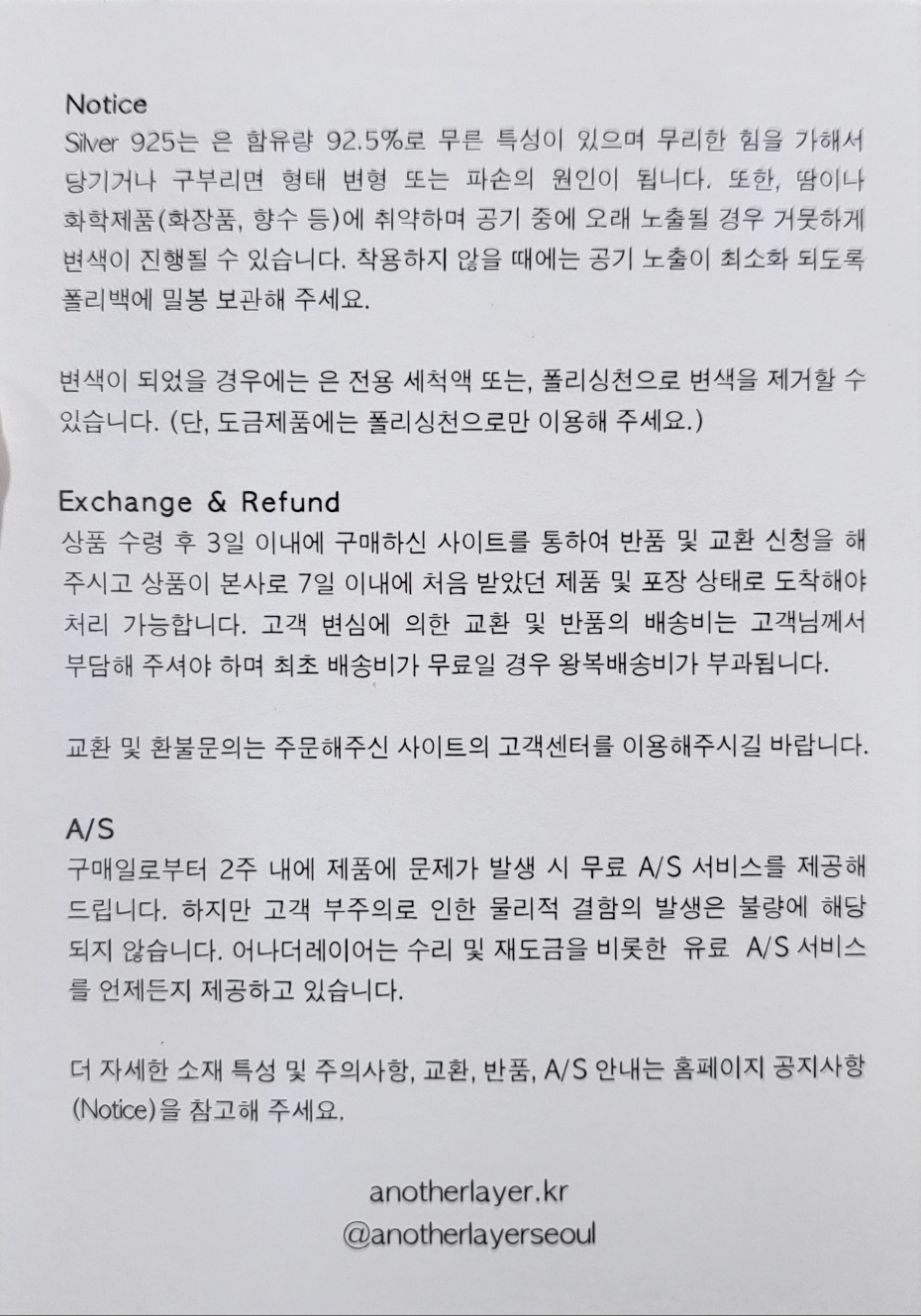 Silver925 전문 주얼리 브랜드 어나더레이어, 미니멀 네추럴한 어나더레이어 주얼리