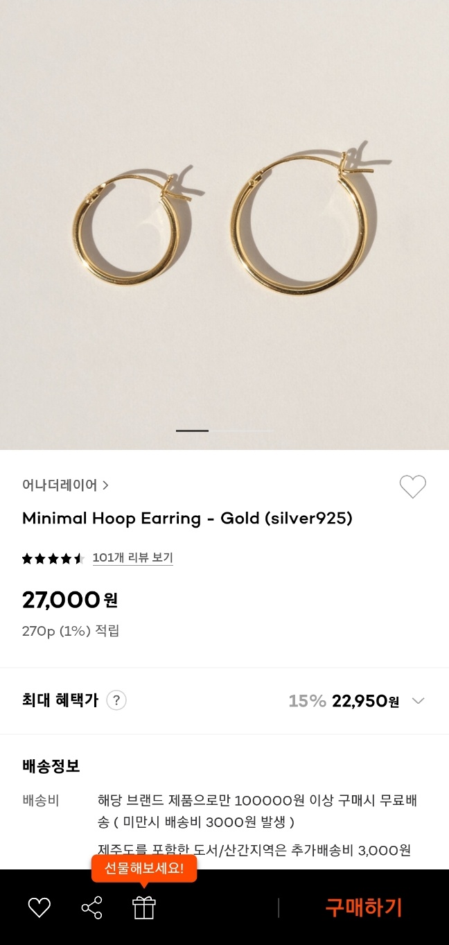 어나더레이어 링귀걸이 가격은 27,000원(1쌍)
