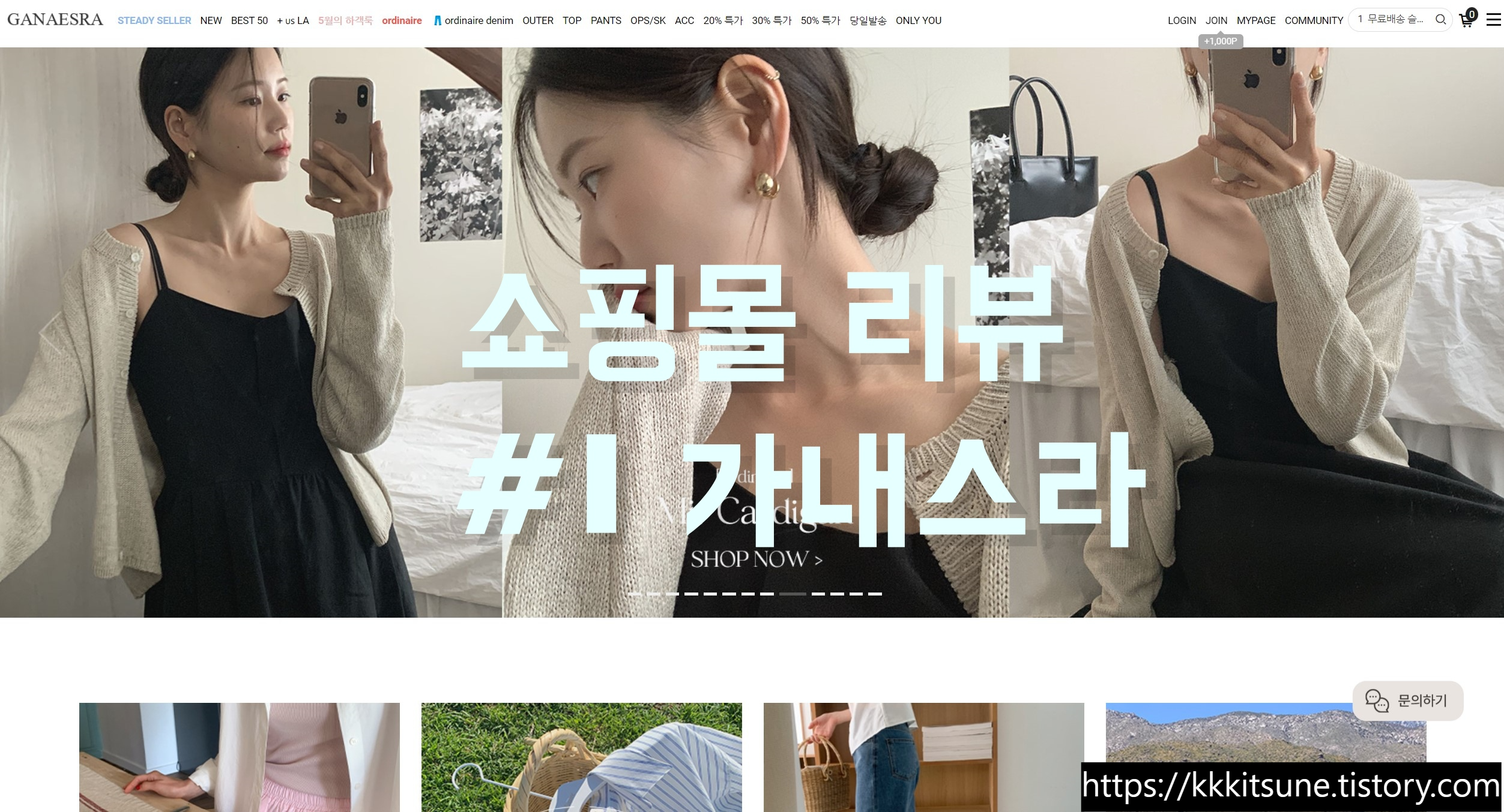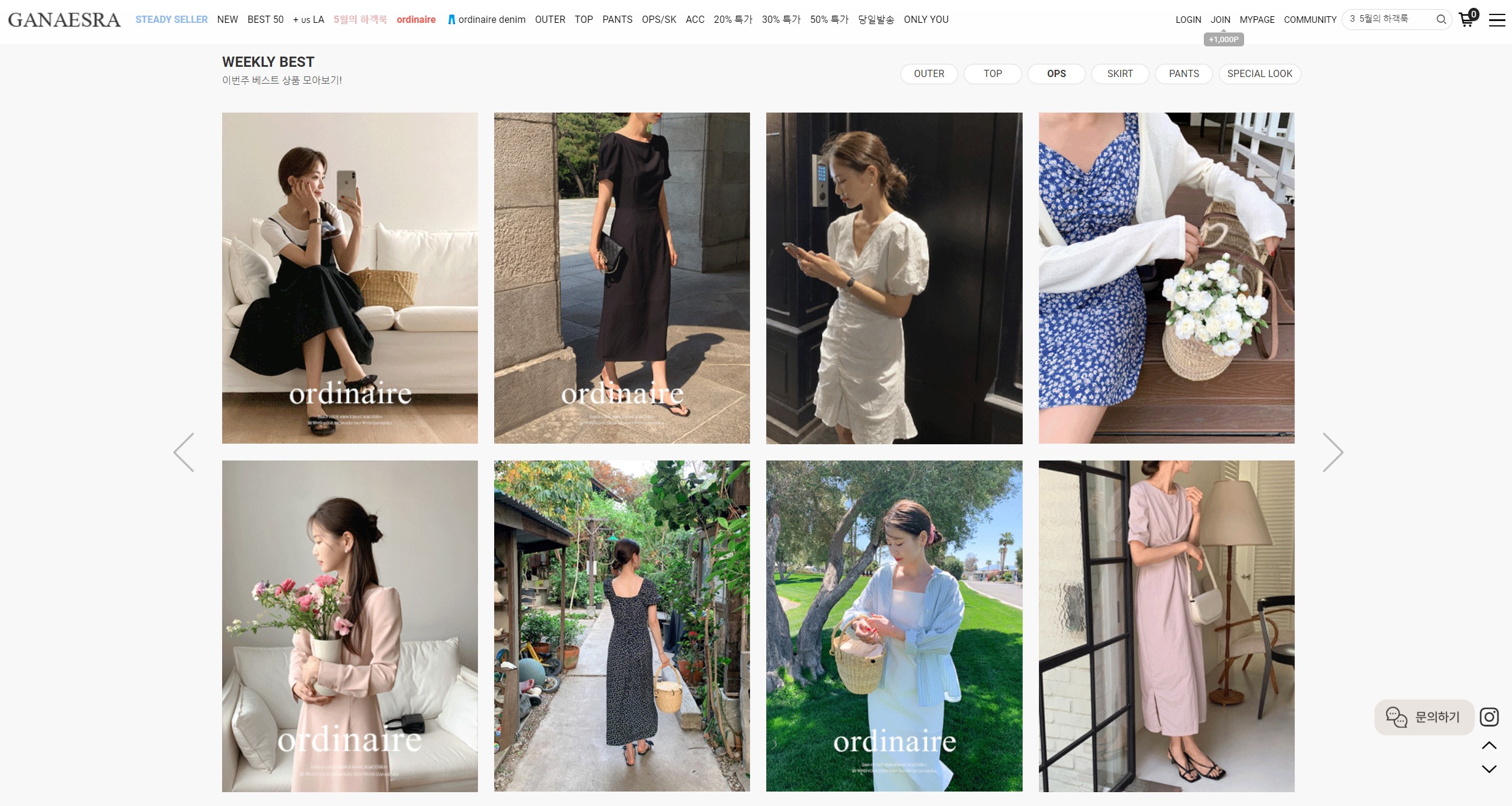 당신의 일상과 함께합니다. 감성 데일리룩 가내스라. 여성의류쇼핑몰. 자체제작 ordinaire.