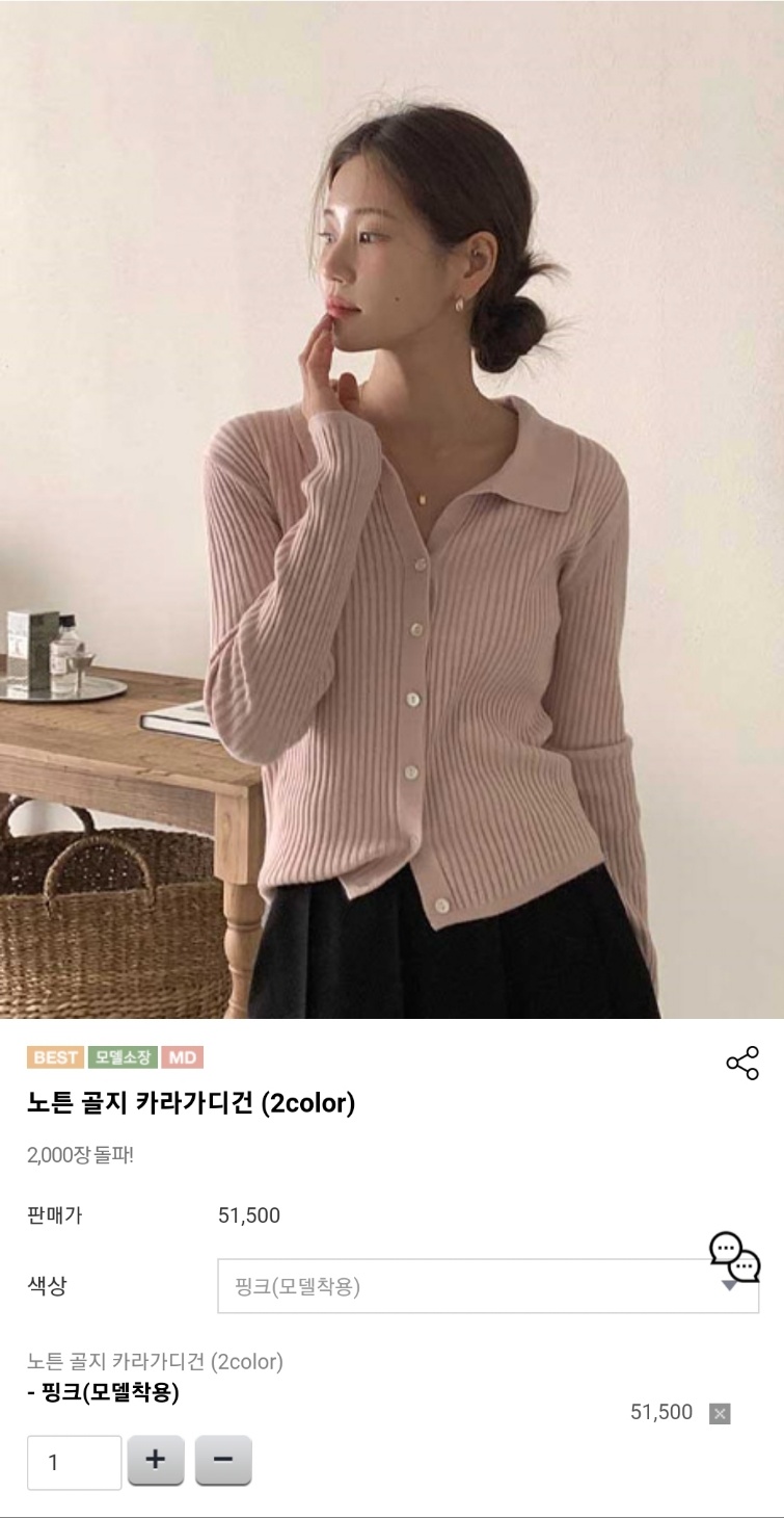 두 번째 제품은 노튼 골지 카라 가디건이다.