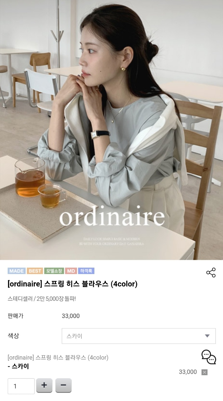'ordinaire'라고 박혀 있는 옷은 자체 제작이라는 뜻이다.