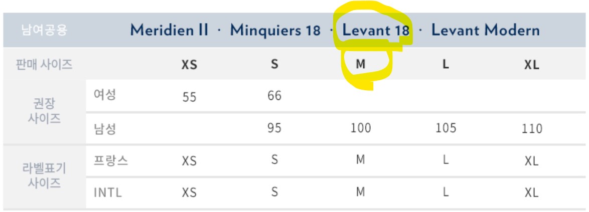세인트제임스 레반트 사이즈는 총 5가지다.