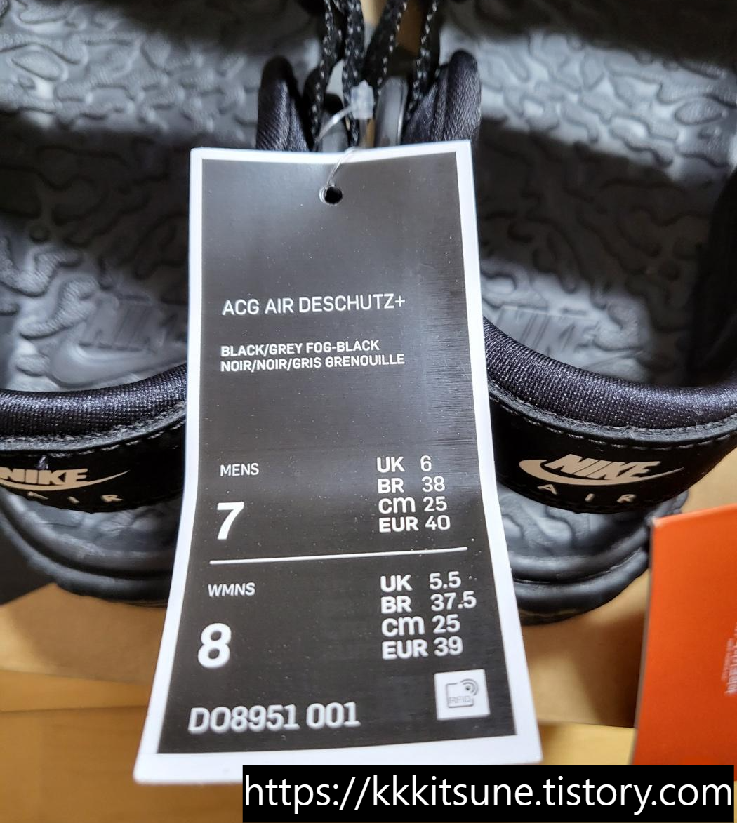 나이키 에어데슈츠 사이즈표가 신기해서 찍어 봤다.