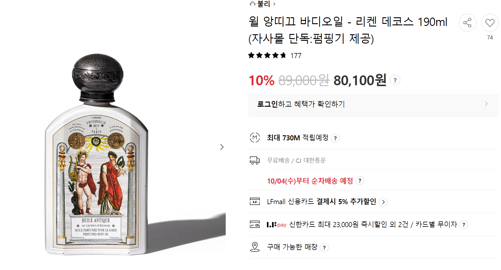 불리 바디오일 리켄 데코스 가격은 80,100원