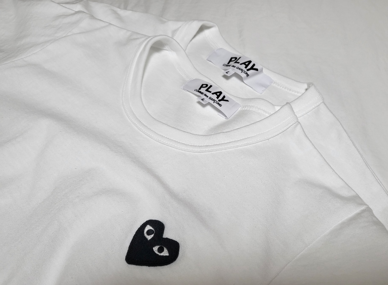 오늘의 주인공은 나의 두 번째 꼼데가르송 꼼데가르송 와펜 반팔 티셔츠, 이번엔 흰색이다. 짝꿍께서 하사하신 일본 기념품 디테일, 남자/여자 사이즈 비교, 가장 궁금한 일본 현지 가격까지 다룰 예정! https://www.comme-des-garcons.com/ COMME des GARÇONS www.comme-des-garcons.com ◾꼼데가르송 와펜 티셔츠 언박싱 짝꿍이 후쿠오카에서부터 쇼핑백째 고이 모셔온 꼼데가르송 왠지 모르겠지만 포켓이라고 써있다. 작은 매장을 포켓이라고 하나??? 딱 봐도 차이나는 사이즈 왼쪽이 내 것, 오른쪽이 짝꿍 것이다. 신나서 막 뜯고 싶었는데 블로그에 올리겠다고 하나 하나 사진 찍은 나 칭찬해 꼼데가르송의 상징인 하트 와펜 빨간색은 흔하다고 검정색을 골라온 짝꿍 아주..